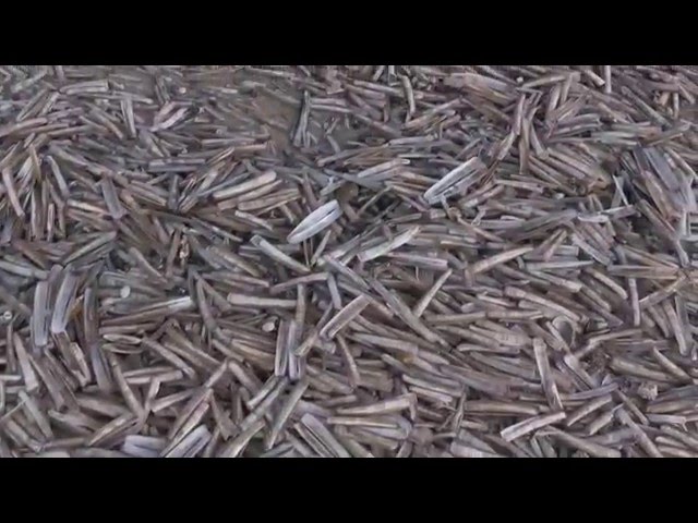 Couteaux échoués sur la plage. Un festin pour goélands.